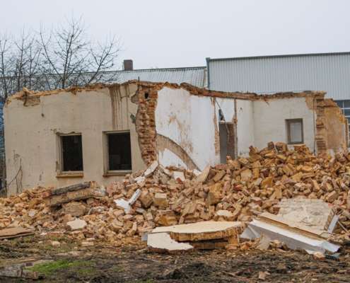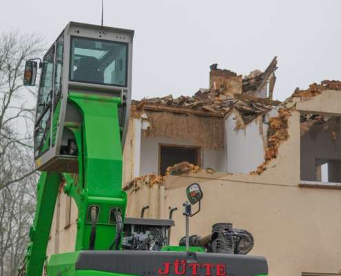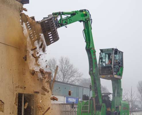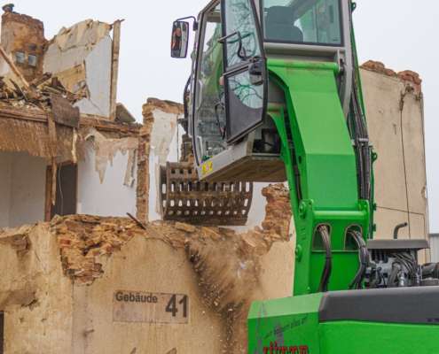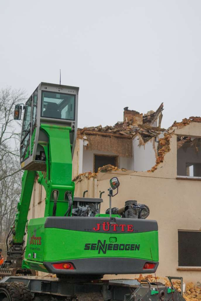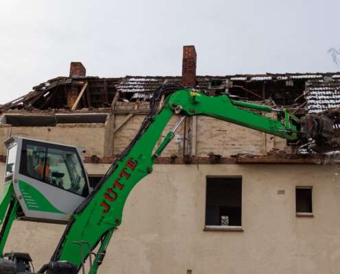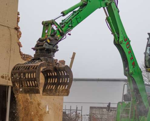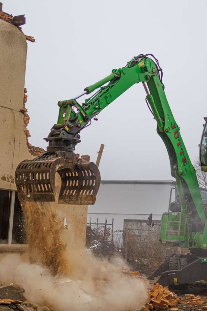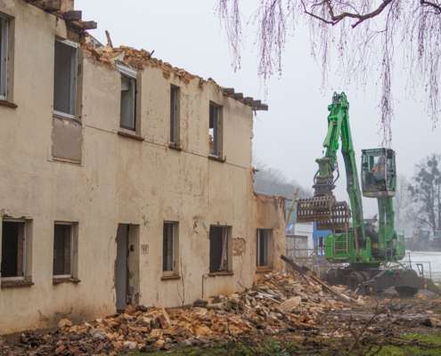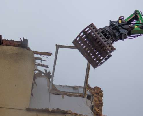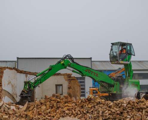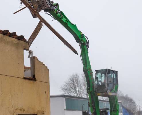 Dabei wurden die verschiedenen Baustoffe wie Holz und Ziegel aus der Dachkonstruktion, Metall- und Kunststoffelemente aus Fenstern, Türen, etc. und weiterer Bauschutt vom gesamten Gebäude sorgfältig und sortenrein getrennt. Daraufhin wurden diese Baustoffe auf unserem Recyclingplatz entsorgt bzw. wieder aufgewertet für eine Wiederverwendung als RC-Material.