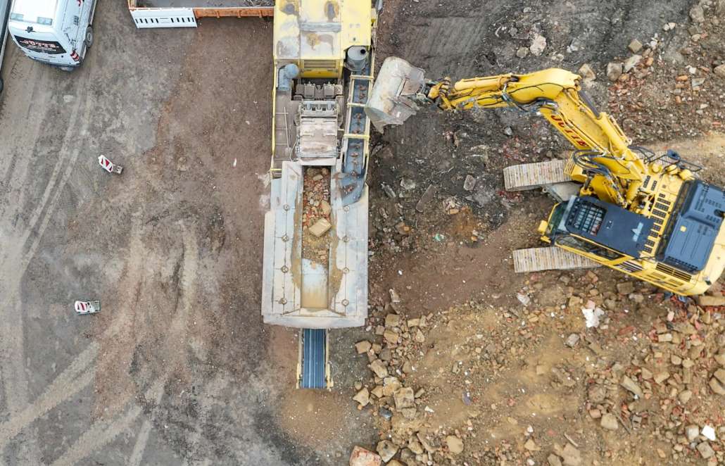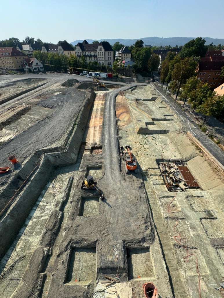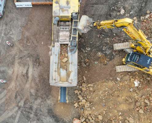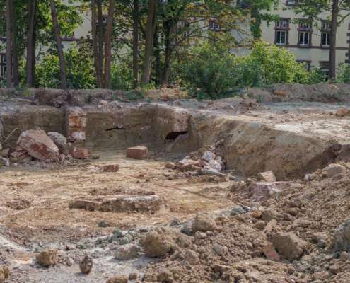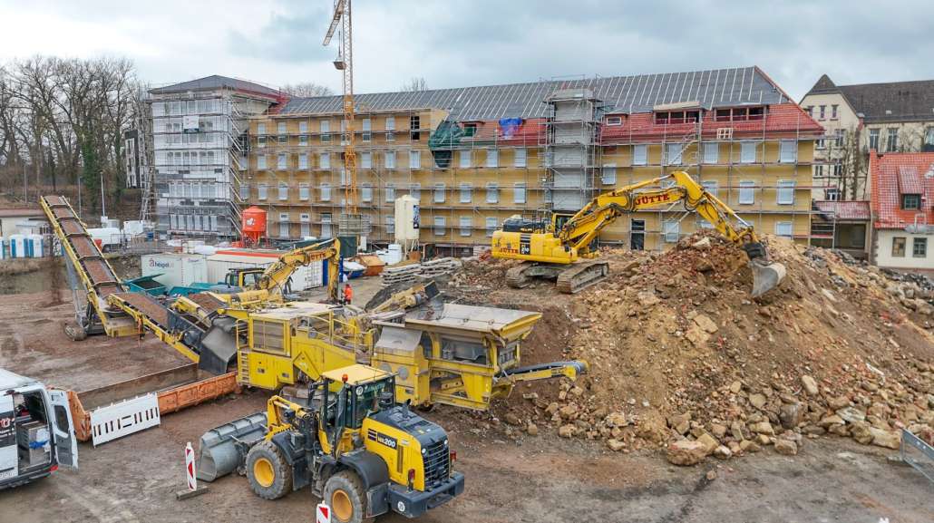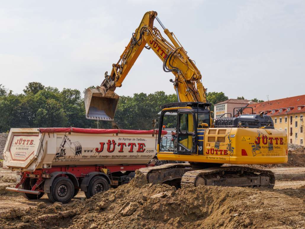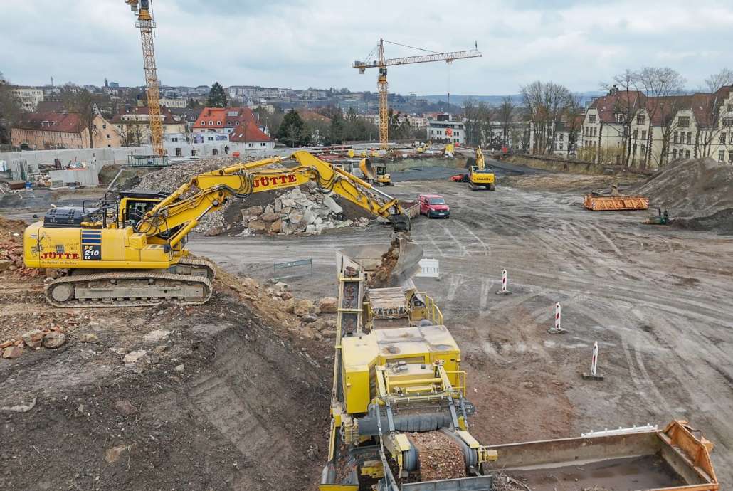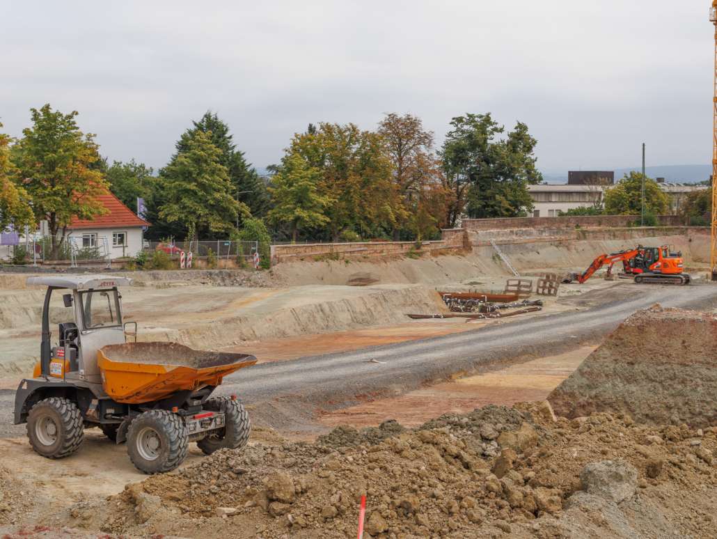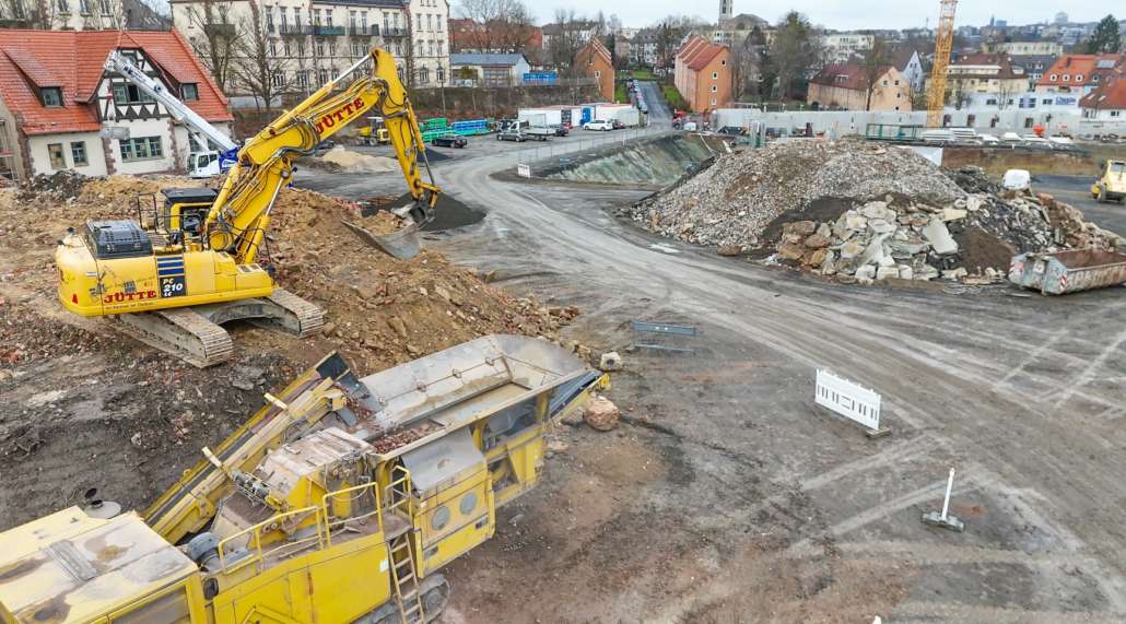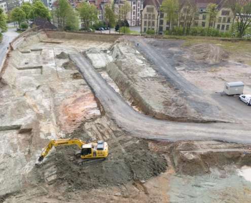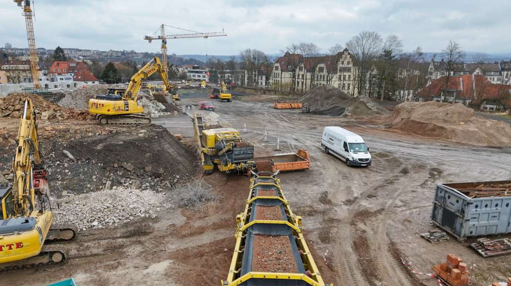 In dem Wohngebiet Kassel Wehlheiden wurden verschiedene Tiefbauarbeiten getätigt. Unter anderem wurden alte Bauwerksmauern und Fundamente ausgegraben, neue Fundamente hergestellt, Baustraßen und Baugruben errichtet, tonnenweise Erde abgefahren, Bauschutt zerkleinert und enthaltenes Metall aussortiert sowie Bauschutt vor Ort mit unserem Brecher durchgemahlen und wiederverwendet.