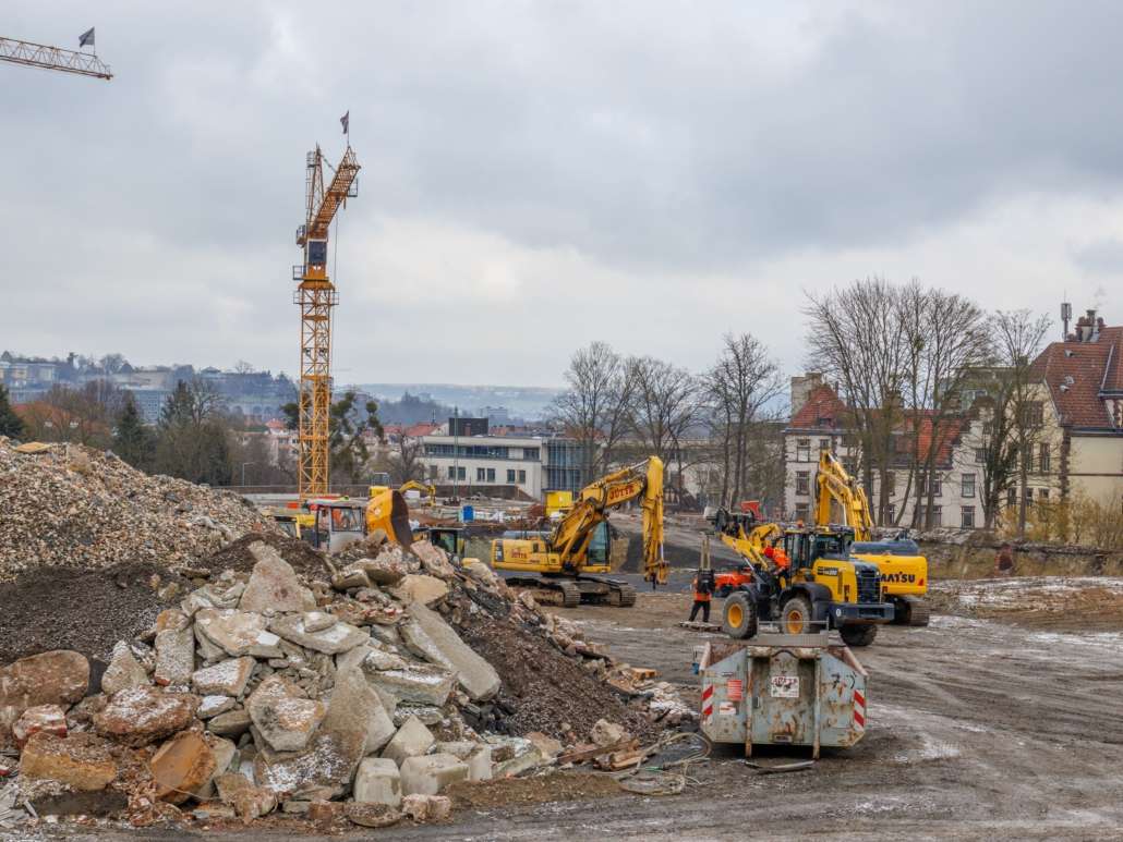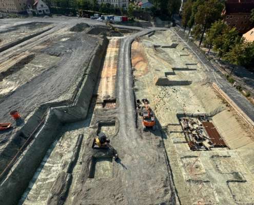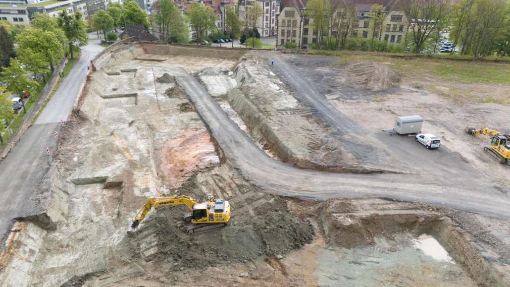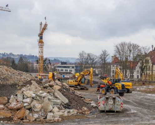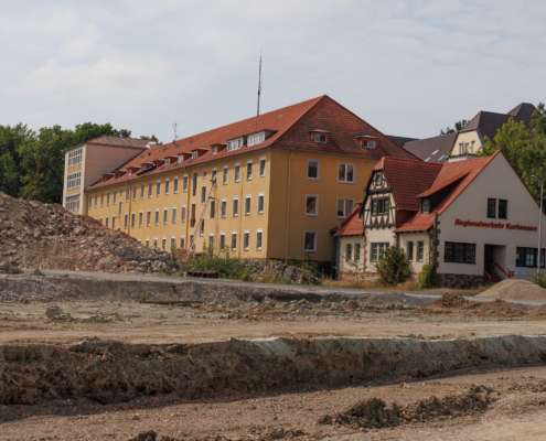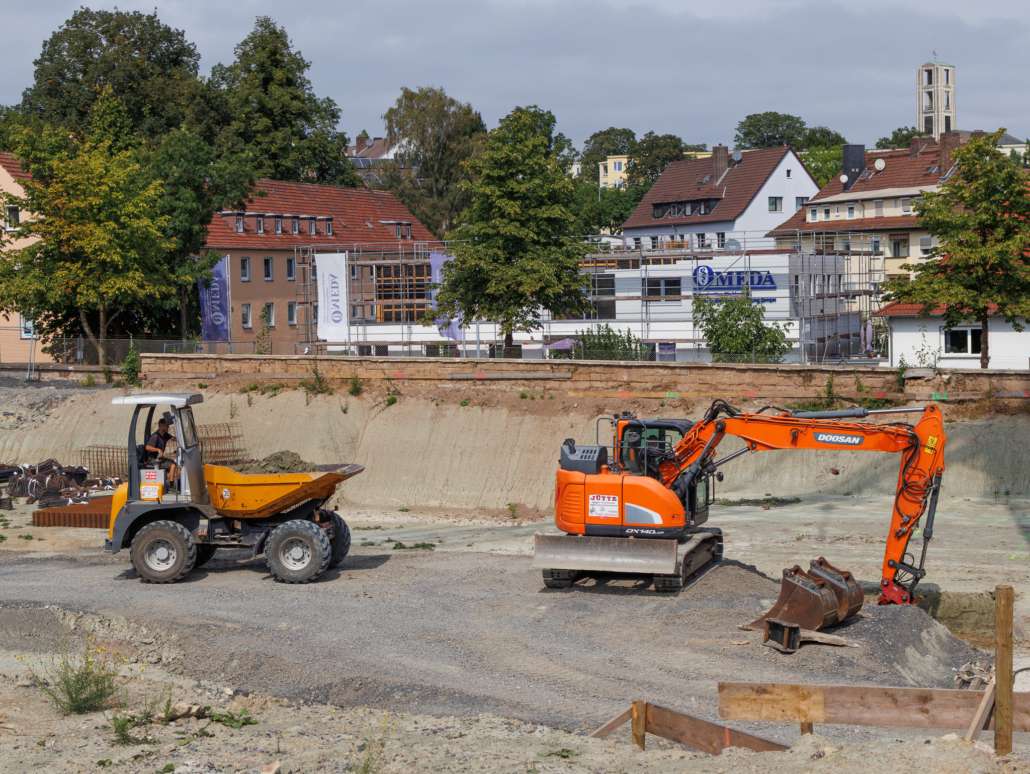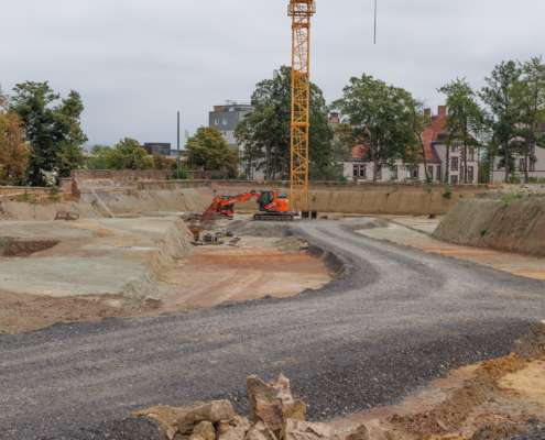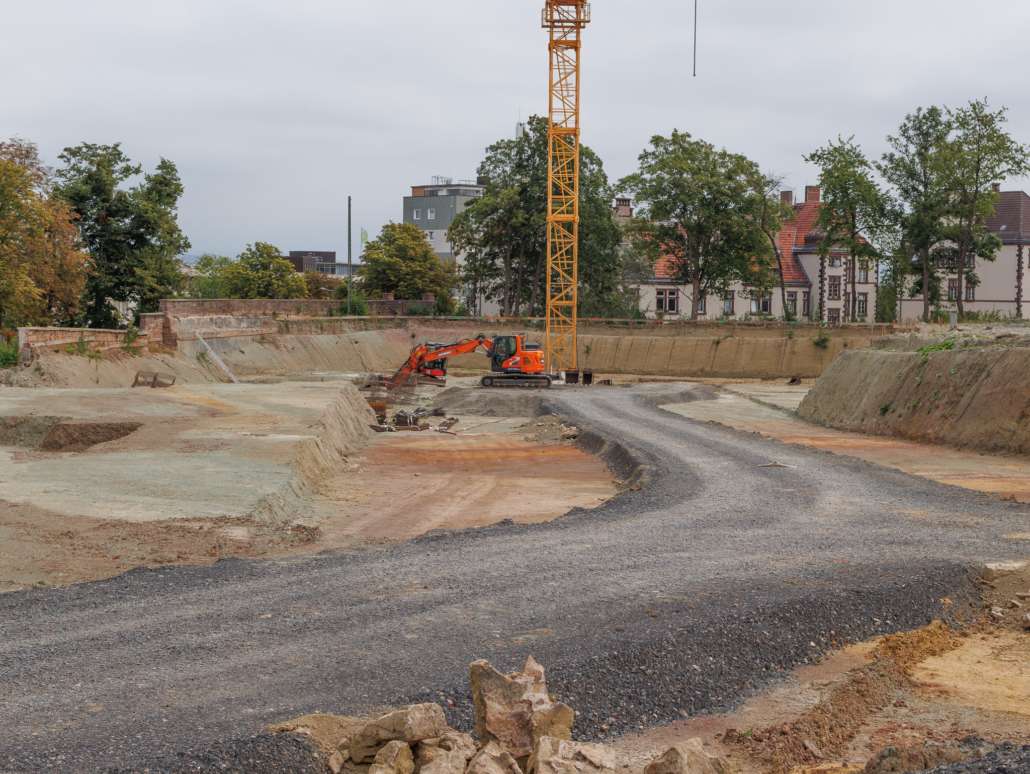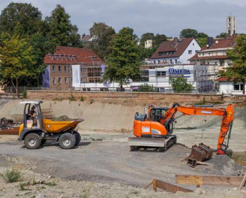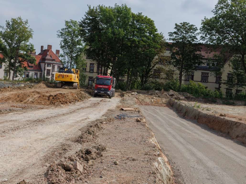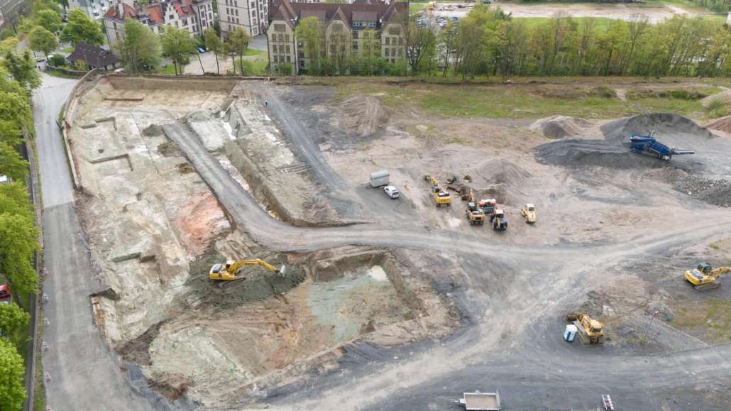 In dem Wohngebiet Kassel Wehlheiden wurden verschiedene Tiefbauarbeiten getätigt. Unter anderem wurden alte Bauwerksmauern und Fundamente ausgegraben, neue Fundamente hergestellt, Baustraßen und Baugruben errichtet, tonnenweise Erde abgefahren, Bauschutt zerkleinert und enthaltenes Metall aussortiert sowie Bauschutt vor Ort mit unserem Brecher durchgemahlen und wiederverwendet.